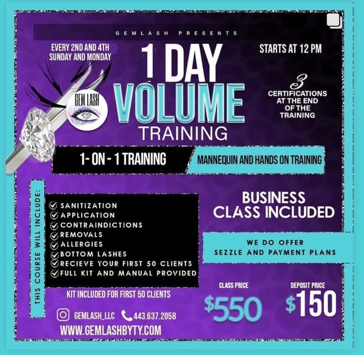 Students will successfully become certified lash techs . Students will receive 1 days of instruction .