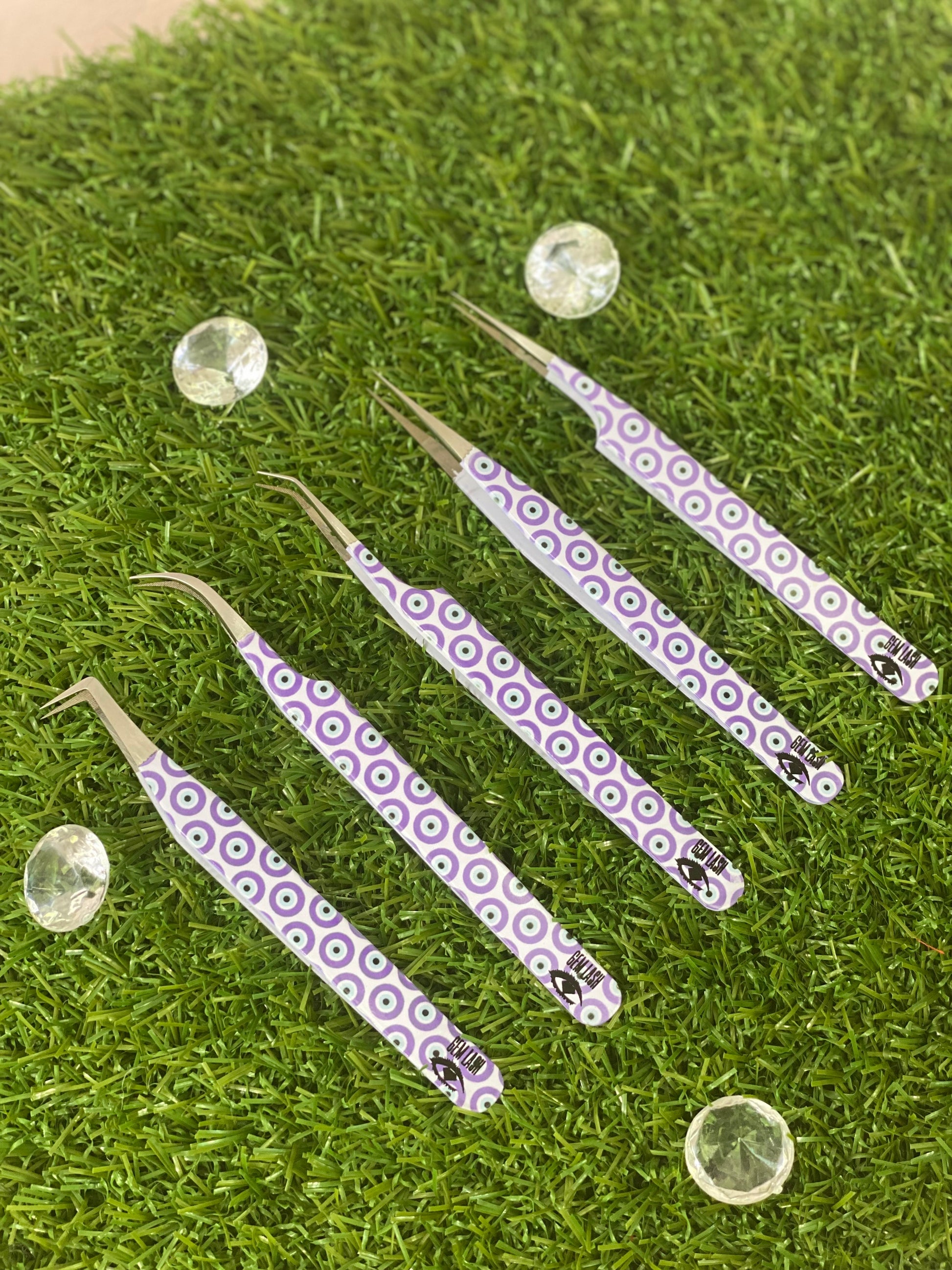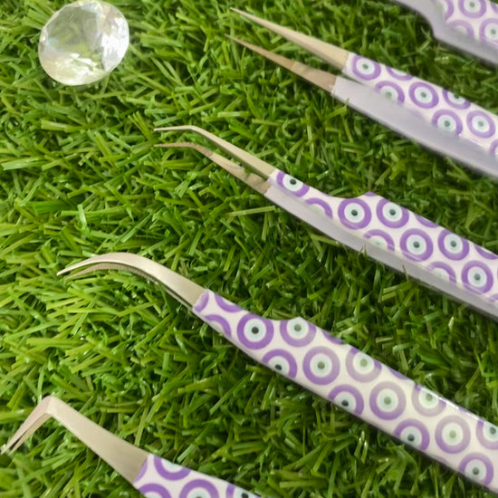 Expertly crafted for lash artists, our Evil Eye Lash Tweezers feature a signature evil eye design and precise fiber tip for effortless lash application. Choose from 5 different styles to create stunning lash looks with ease. Elevate your lash game with these premium tweezers.