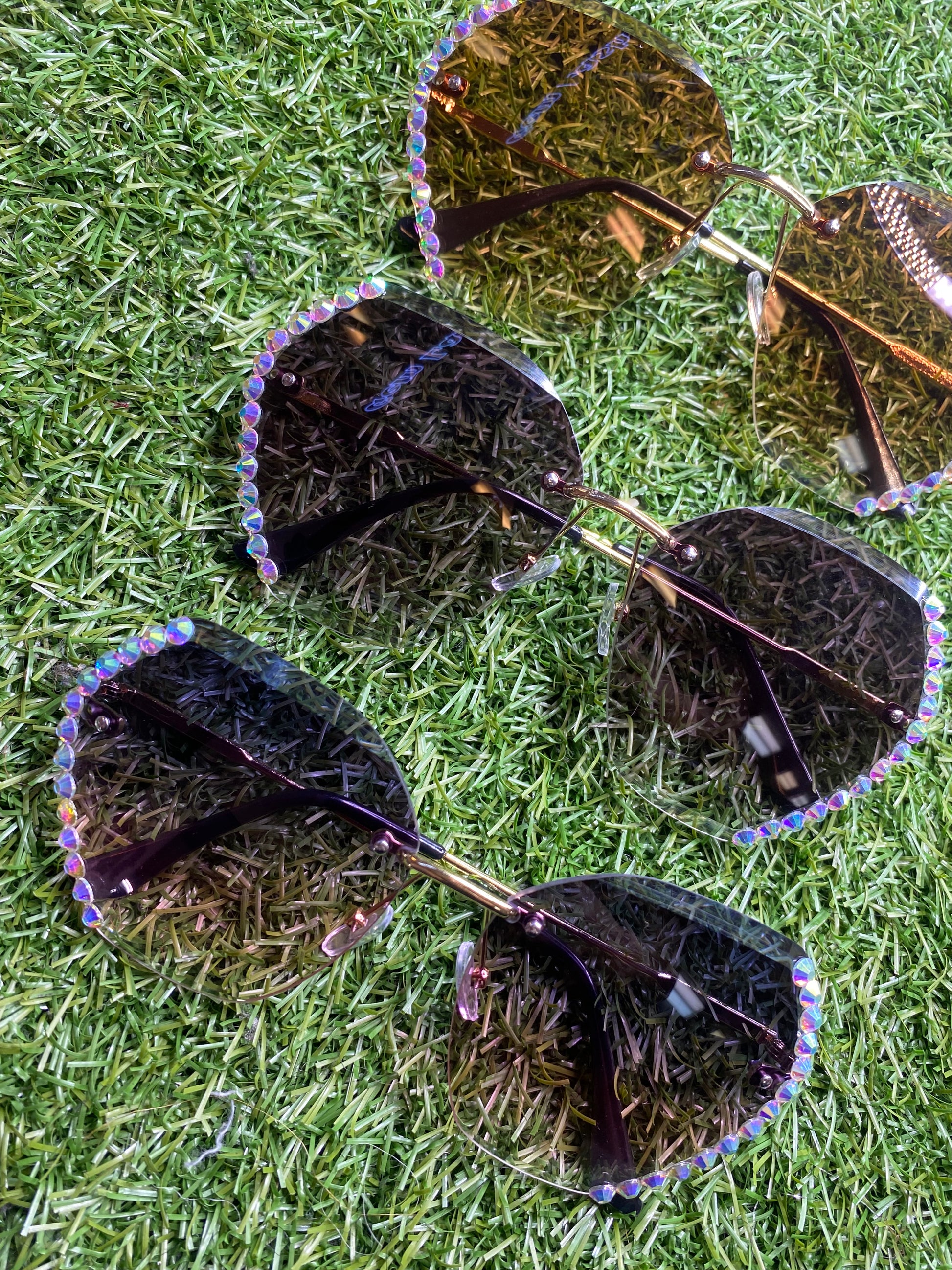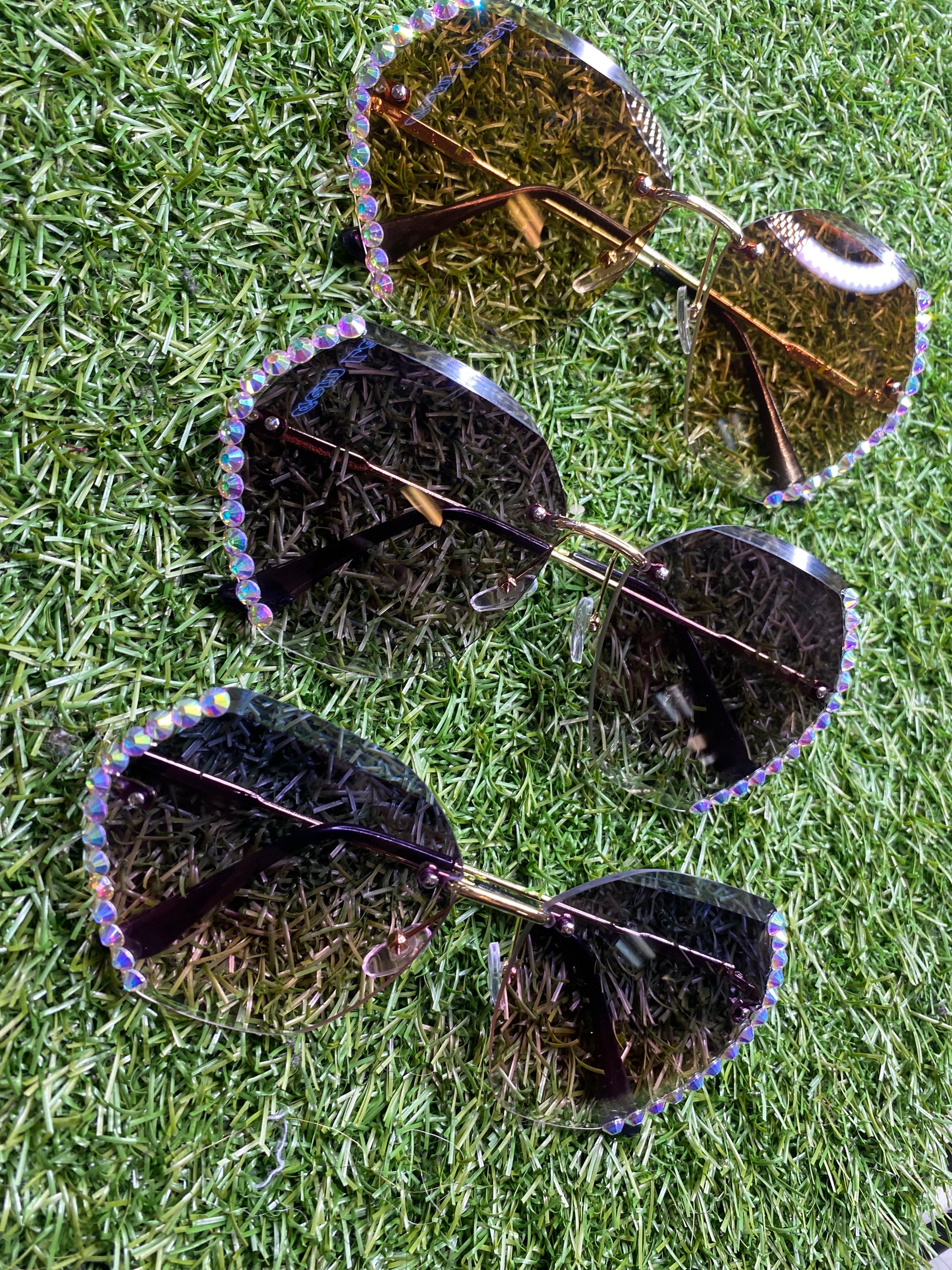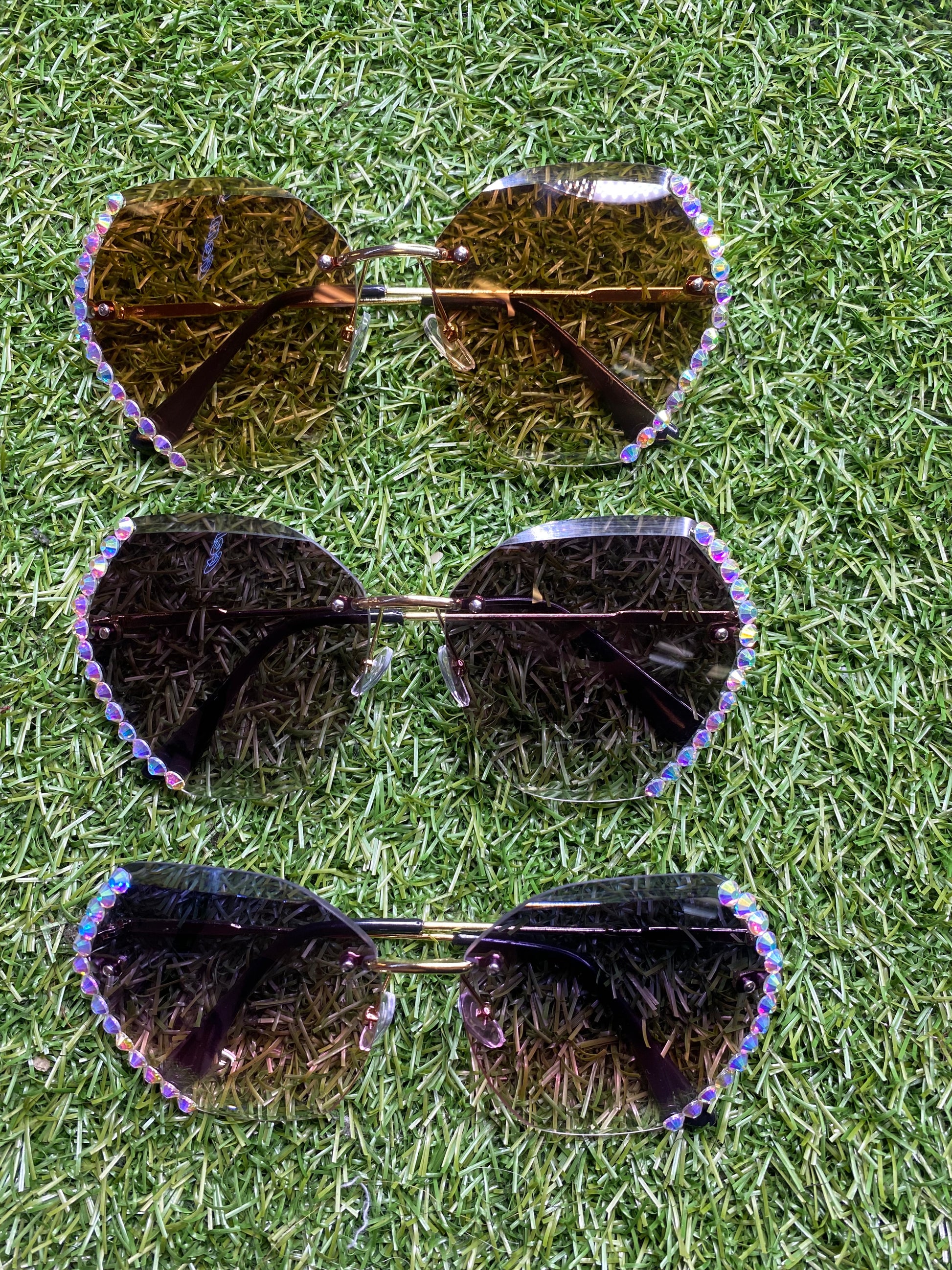 Experience luxury and style with Gem Borders Sunnies. These octagon sunglasses feature stunning gem accents along the outer borders, available in 3 chic colors. Add a touch of elegance to any outfit while protecting your eyes from the sun.