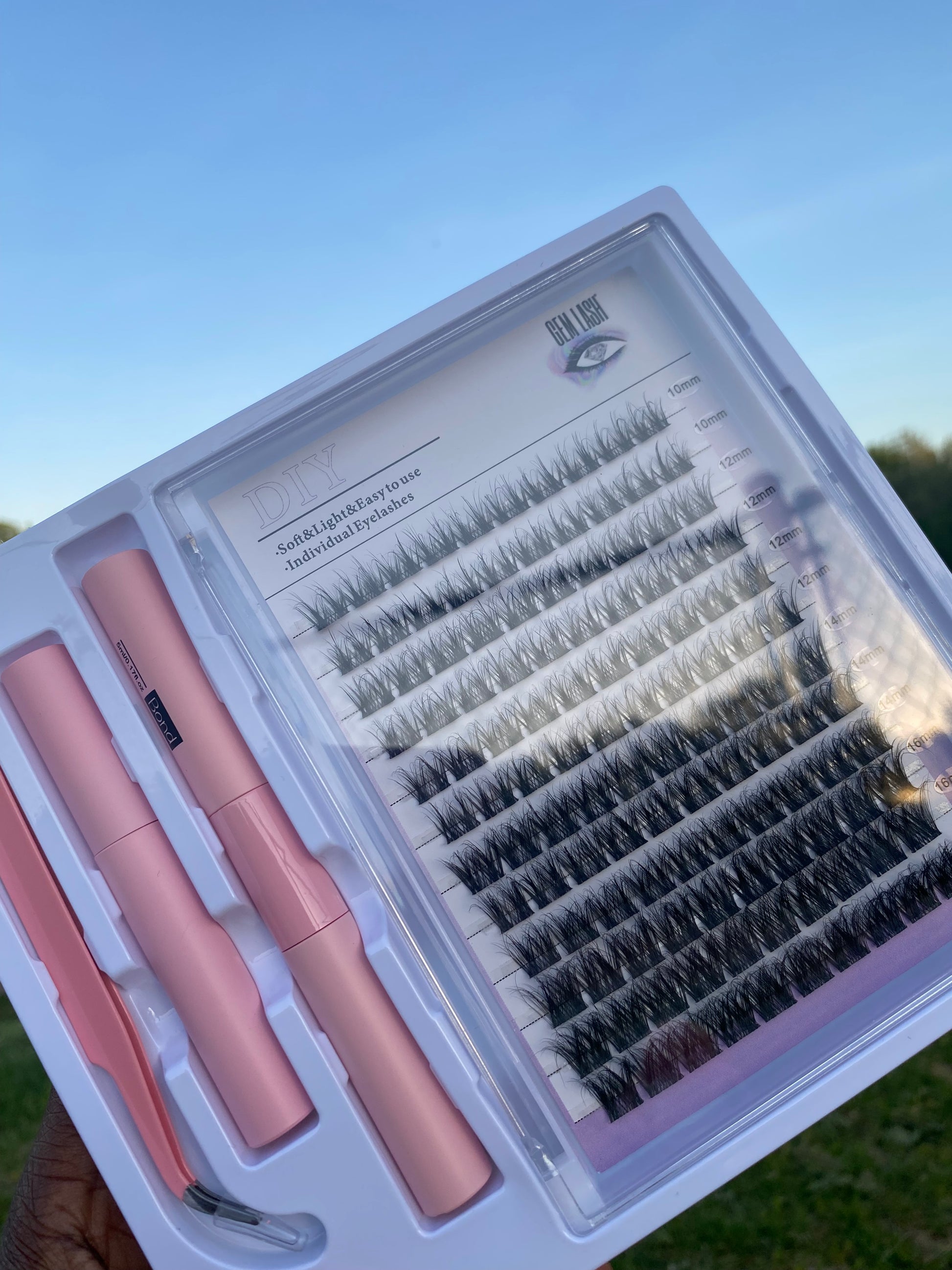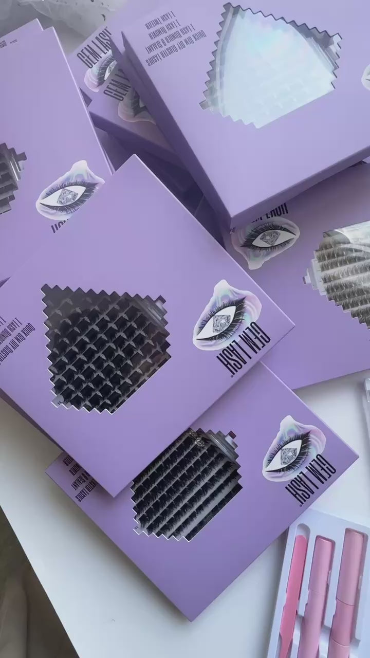 Create stunning lashes with the GemLash Quick Gem DIY Cluster Lashes. This kit includes lengths of 10-18, plus bonder, sealer, remover, and tweezers, along with an instructional video. Achieve a professional look with ease. 5 different styles.